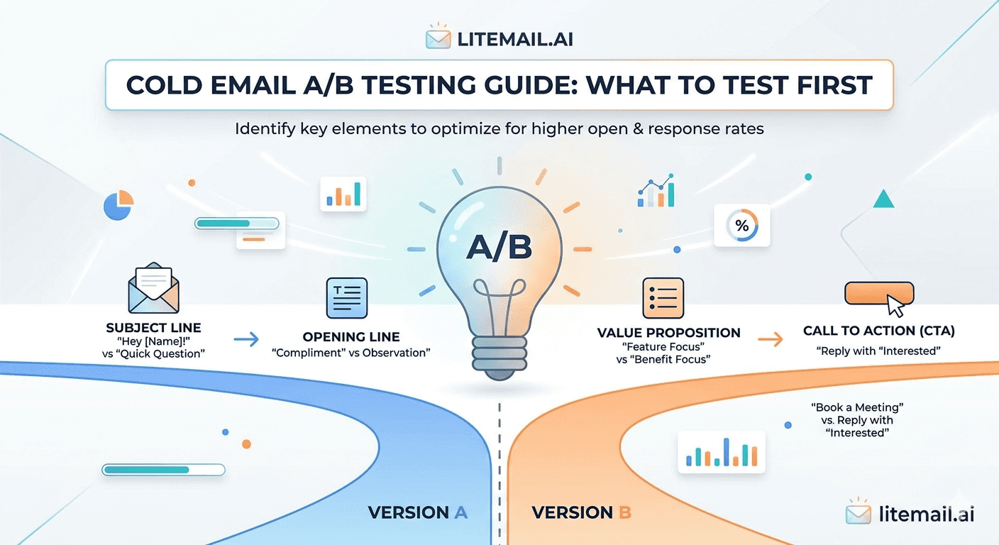 The average B2B cold email reply rate in 2026 is 3.43%. Teams that run disciplined, sequential A/B tests consistently push past 8%. That gap — 3.43% to 8%+ — isn't copy talent. It's systematic testing. But most cold email A/B testing is done wrong: changing two variables at once, testing on lists too small to generate meaningful data, or testing the wrong elements in the wrong order. This guide fixes that.