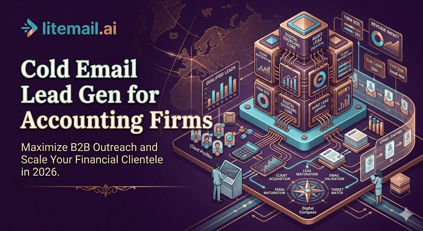 Cold email lead gen works for accounting firms when targeted at specific business owner segments (not generic CFO lists), using separate sending domains to protect the firm's primary reputation, and leading with compliance or savings specifics rather than service descriptions. Keep sequences to 4–5 touches. Litemail's pre-warmed inboxes at $4.99/inbox/month with US dedicated IPs and 94–96% inbox placement are the right infrastructure for the Outlook-heavy business environments most accounting firm targets use.