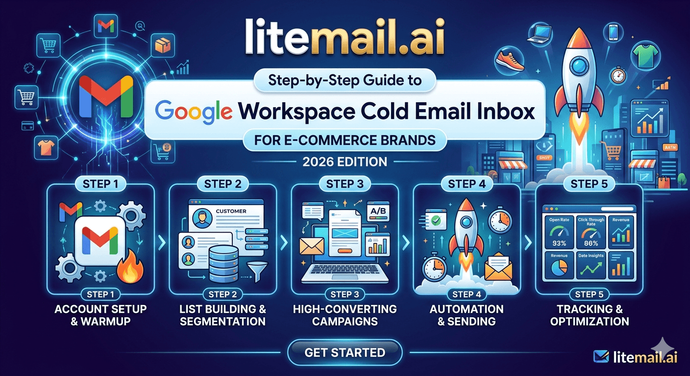 Cold Email for E-Commerce Brands 2026 · Cold Email Inbox Sending Volume for E-Commerce · Cold Email IP Rotation for E-Commerce Brands · Google Workspace Cold Email: Avoid the Promotions Tab · SPF DKIM DMARC Pre-Warmed Inboxes Auto Setup 2026