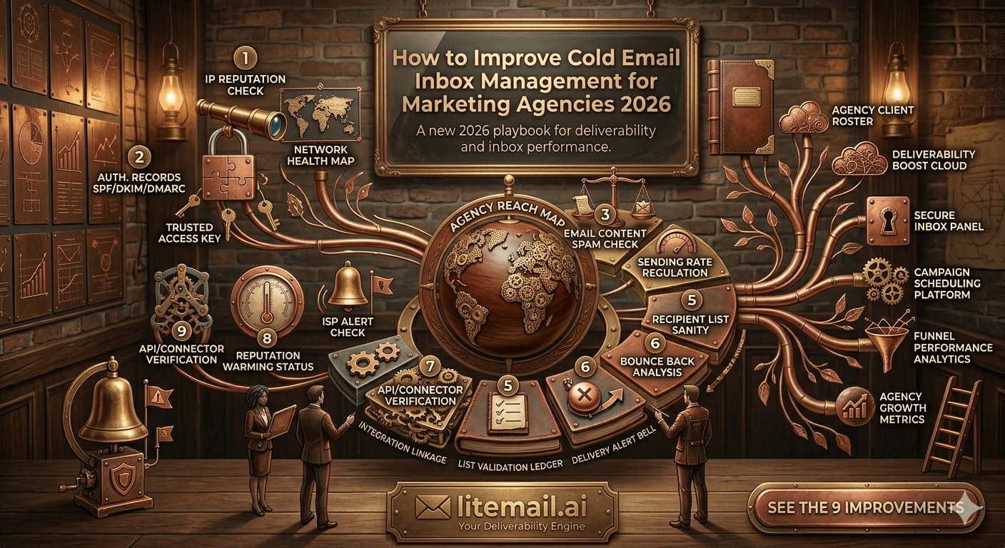Related reading: Risks of Google Workspace Inbox Setup for Marketing Agencies · Pre-Warmed Inbox Monitoring for Small Teams · Cold Email Agency Deliverability Report Template · Google Workspace Inbox Replacement Cycle Guide · Best Pre-Warmed Inbox Providers in 2026 (Ranked) · Email Verification Tools 2026: Best Comparison · Litemail Pre-Warmed Inboxes — Plans and Pricing