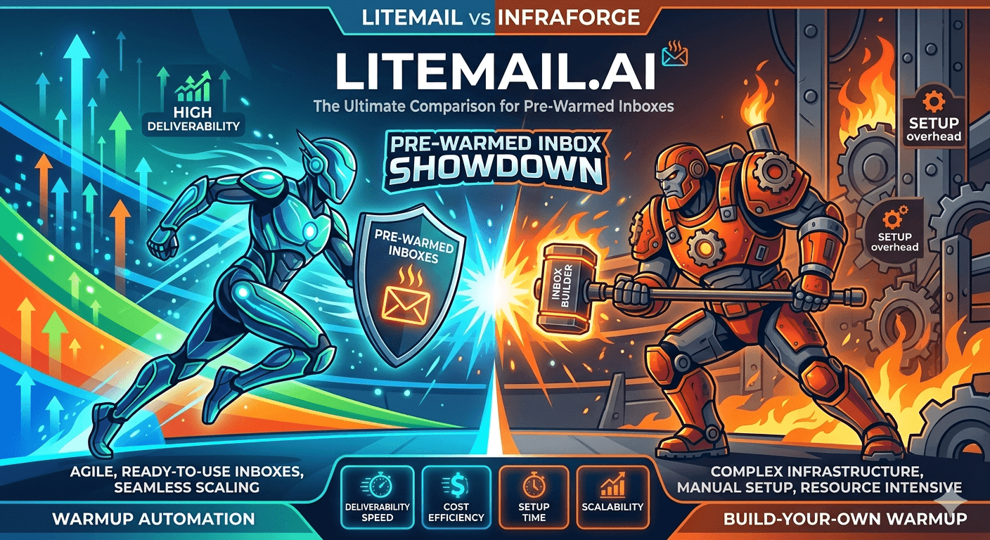 Litemail and Infraforge are both in the legitimate tier of pre-warmed inbox providers — neither is selling fake warmup or fresh inboxes with misleading marketing. The question isn't which is real. It's which is better for your specific needs. This comparison runs both through every criterion that affects real cold email campaign outcomes.