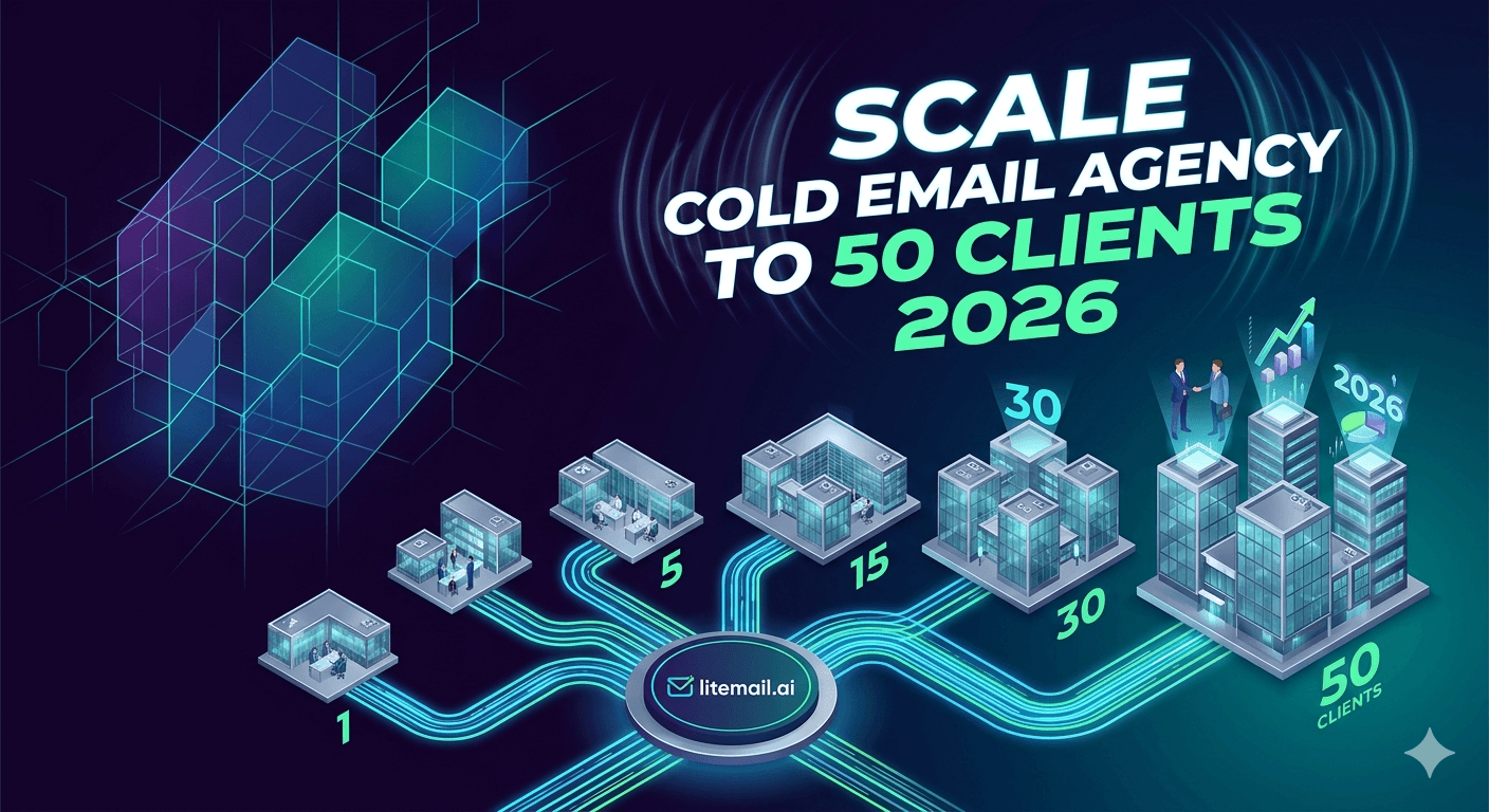 Scaling a cold email agency to 50 clients requires a systemised inbox supply chain, not just more leads. Plan for 3 to 5 sending domains and 2 to 3 inboxes per domain per client — that's 300 to 750 active inboxes at full scale. Pre-warmed inboxes like Litemail's at $4.99/inbox/month with 94–96% inbox placement from day one cut ramp time from 6 weeks to under 48 hours per client onboard. Agencies that skip this math hit spam walls at client 15 to 20 every single time.