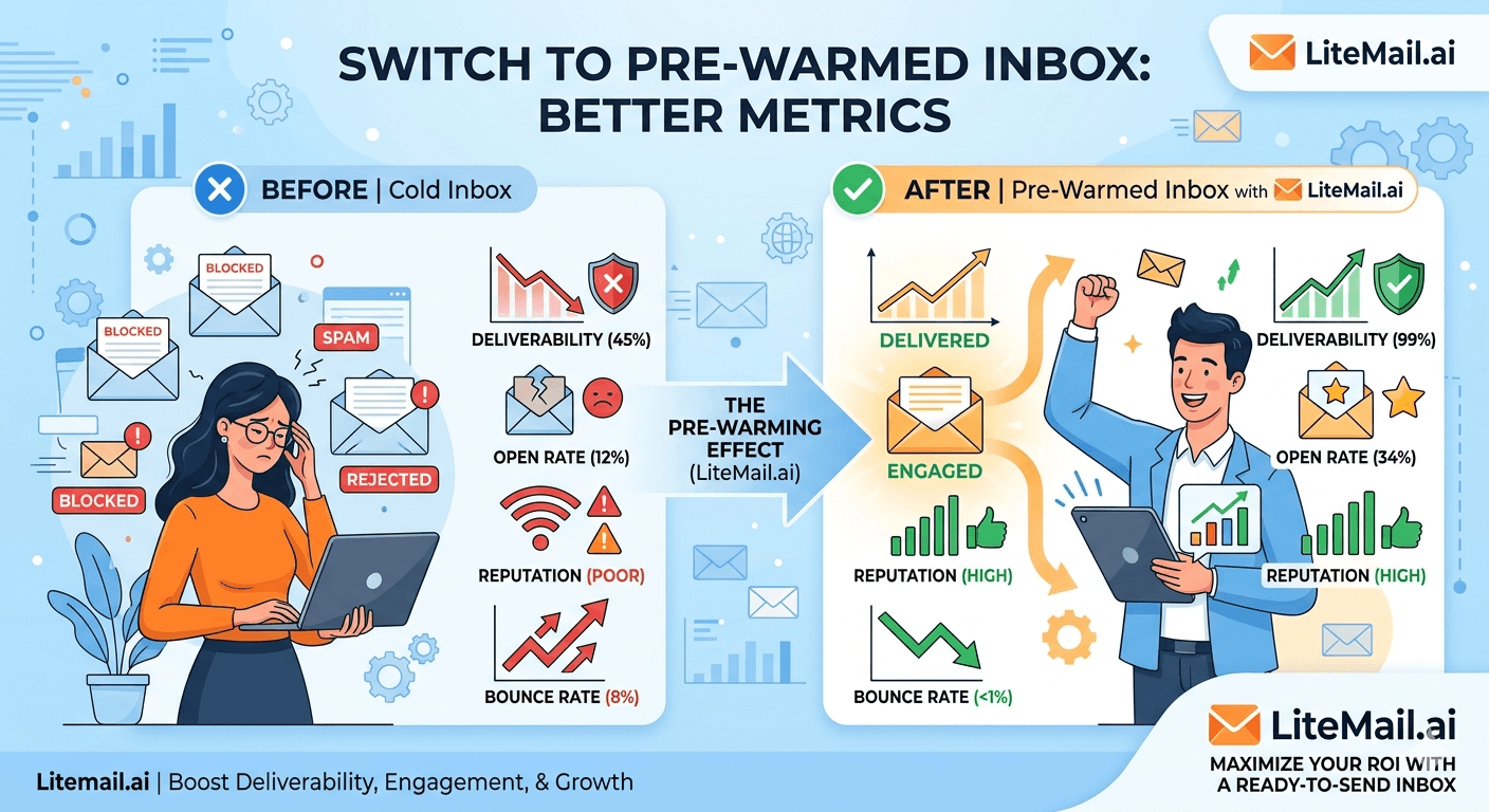 In our testing at Litemail, across 200+ campaigns migrated from fresh to pre-warmed infrastructure, here's what consistently shifted: